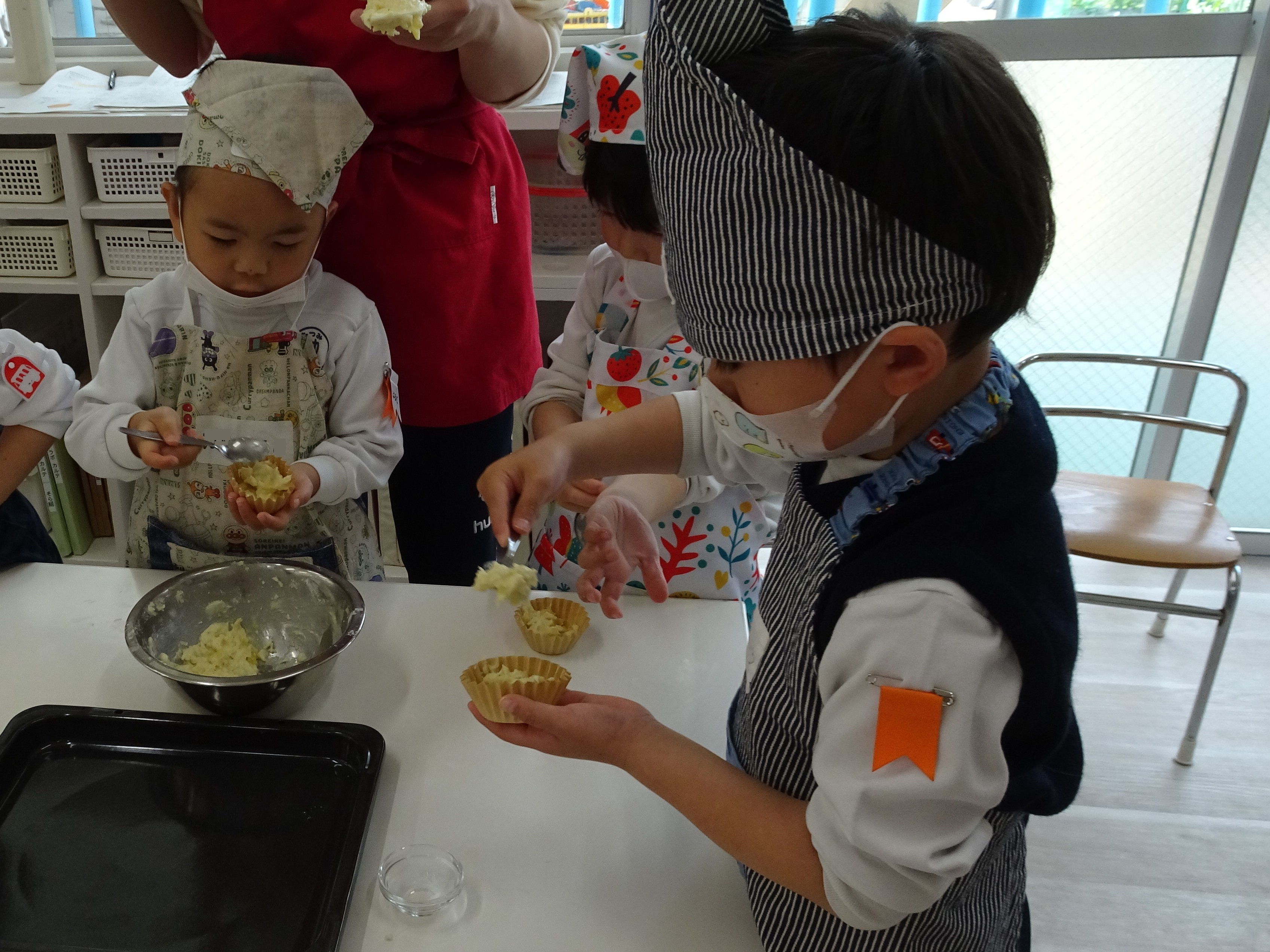 はじめてのデザート作りでしたが、お友だちと協力して具材を混ぜたり、カップに入れたりして、