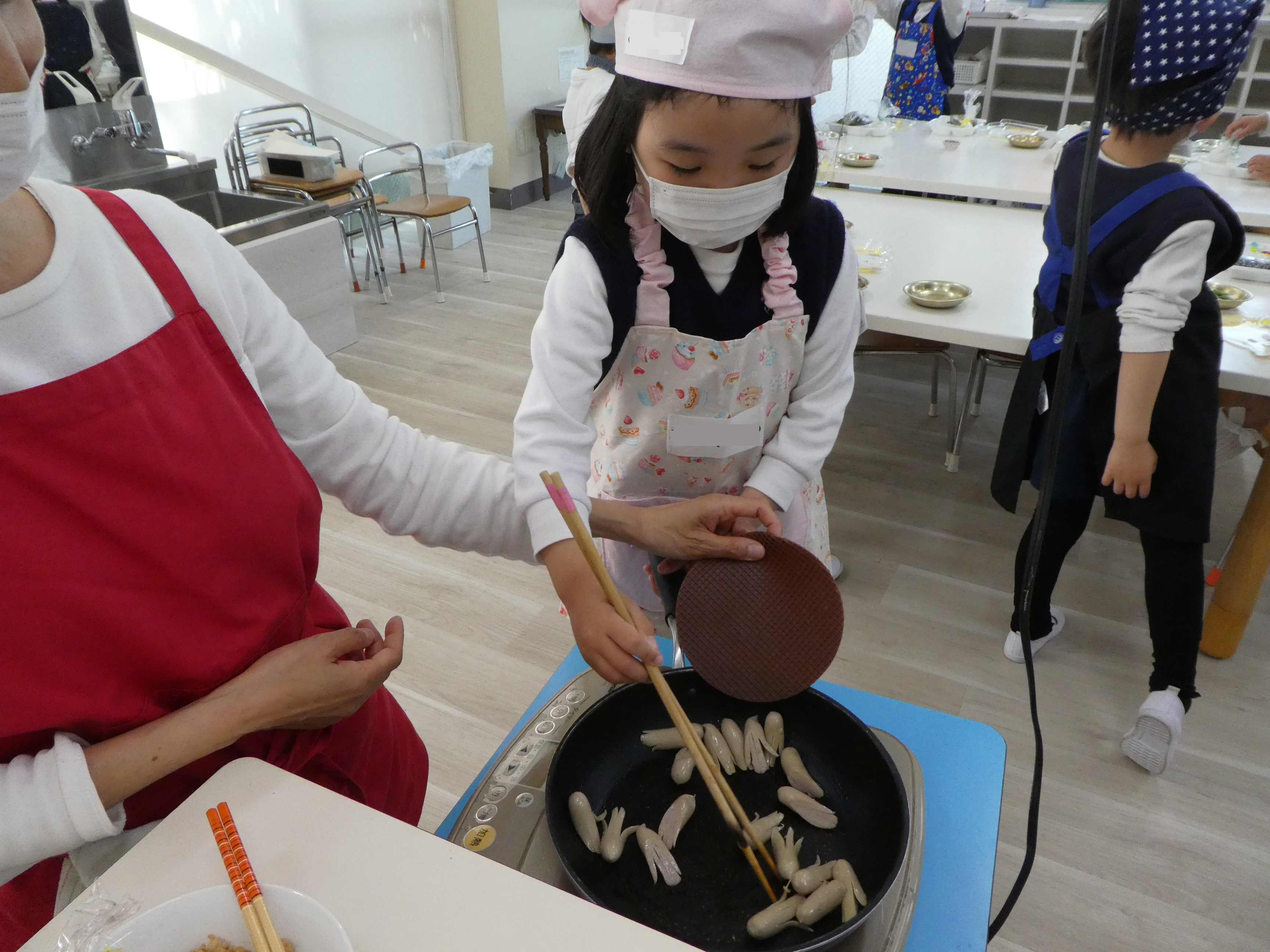 4月のキッチン・ラボは、年長さん・年中さんが一緒にお弁当を作りました