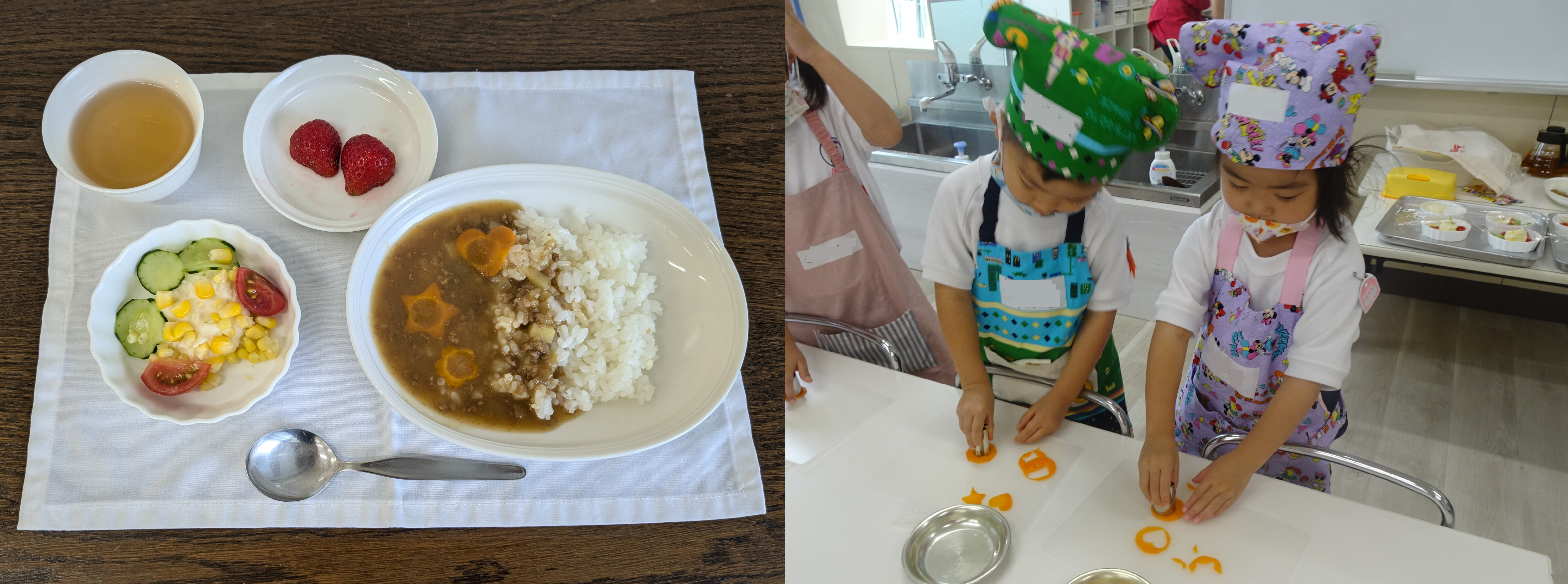 「カレー美味しいね!」とたくさん食べていたり、「自分でトッピングした野菜は食べてみる!」と前向きに挑戦したりする姿が見られました!