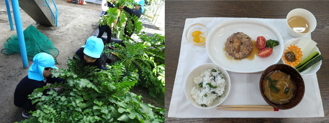 みそ汁に入れた切り干し大根は、収穫した大根を干して作ったもので、園ならではの食べ方を体験しました。