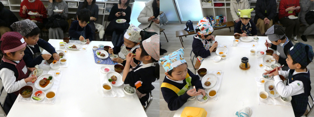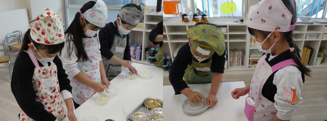 年中さんはキッチン・ラボ参観があり、保護者の方に見守られながら調理をしました。